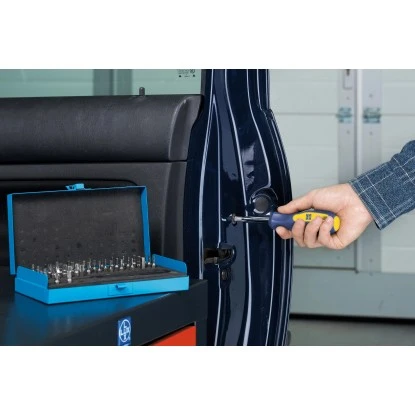 Das 41-teilige LUX-TOOLS Sicherheits-Bit-Set ist mit 40 Spezial-Bits für die meisten Schrauben-Antriebe ausgestattet. Zusätzlich befindet sich in diesem Set ein Handgriff für rutschsicheres und ermüdungsfreies Arbeiten. Alle Einzelartikel sind in einer praktischen Metallkassette verpackt.